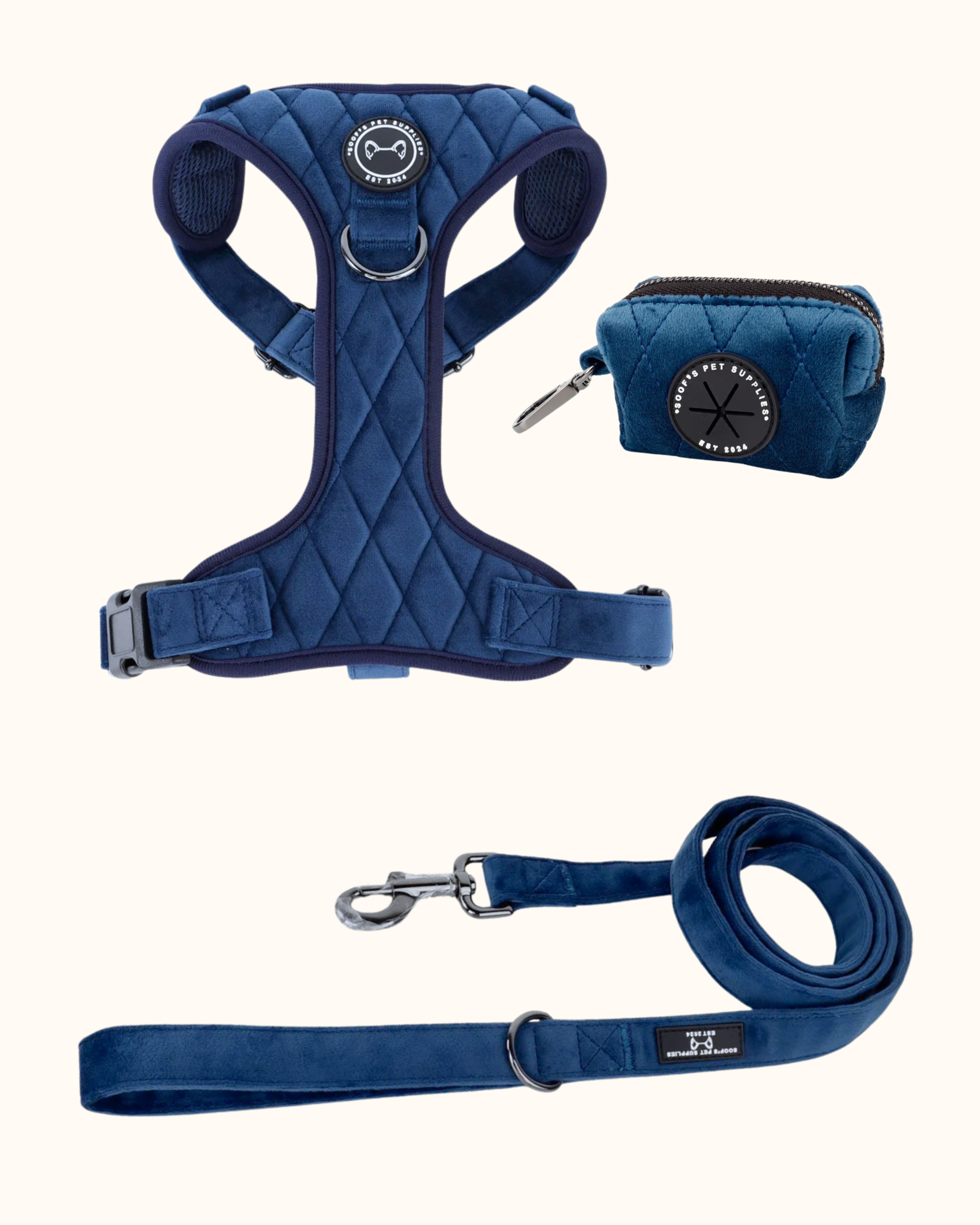 Velvet set - Cobalt Dream met Tuig, Riem & Poepzakhouder